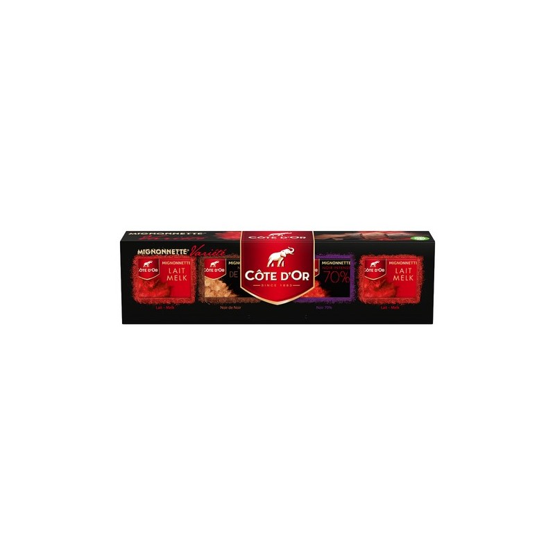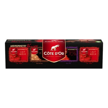 All the intensity and the authenticity of the Côte d'Or chocolate is concentrated in these small tablets that are available in four different varieties : milk, extra dark, dark & 4 saisons (4 seasons).