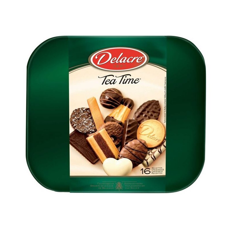 A selection of 16 different kinds of Delacre biscuits of every texture and every taste that will leave you spoilt for choice...amongst which : the Marquisettes/Biarritz/cigarettes russes (russian cigarettes)/Délichoc/Matadi/Coeur blanc (white heart) & dôme truffé (truffle dome)/etc...