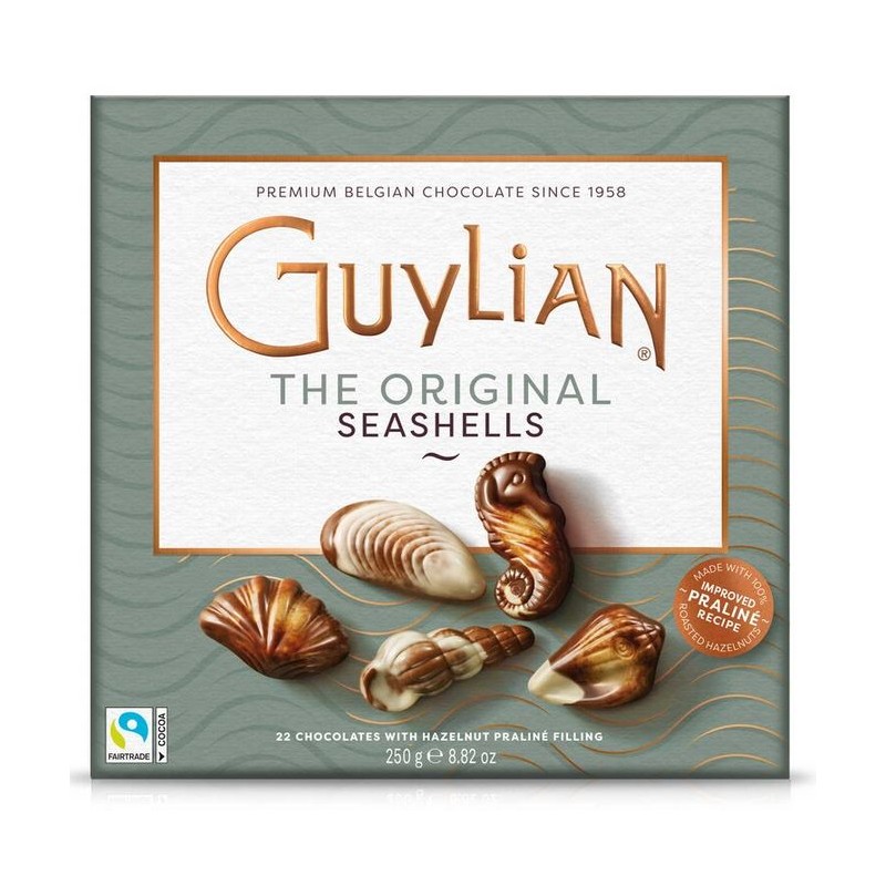 Each seafood is a marbled work of art with swirls of white, milk and pure chocolate with a hazelnut praline topping. Our seafood is made from only the highest quality, carefully selected ingredients, including fair trade West African cocoa beans and the finest quality Mediterranean hazelnuts.
