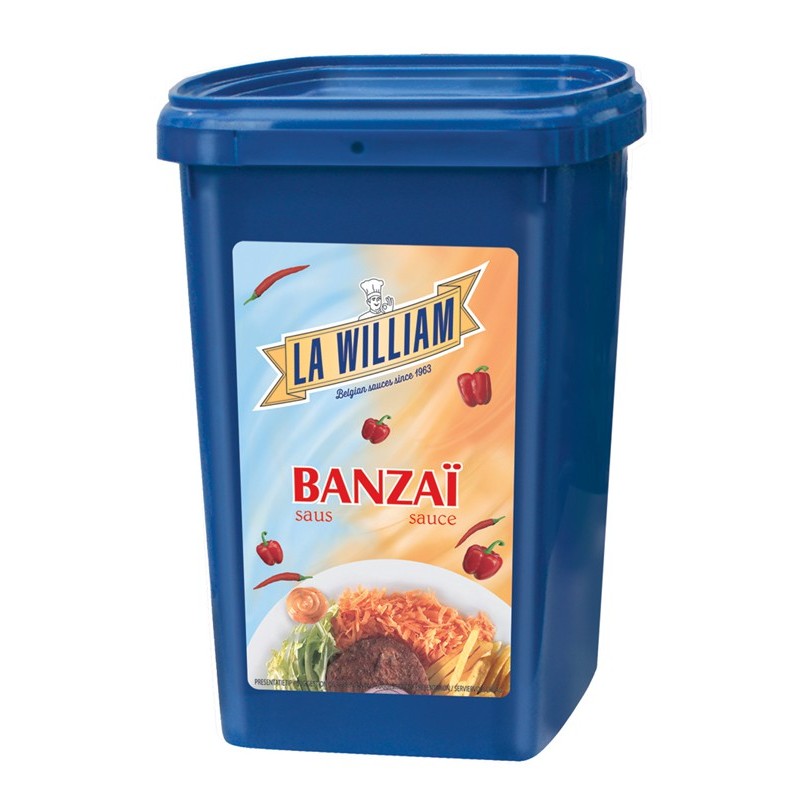 William Banzai is a delicious hot sauce with a strong aftertaste.This tangy sauce is perfect with hamburgers, fries, steak, pork and chicken.