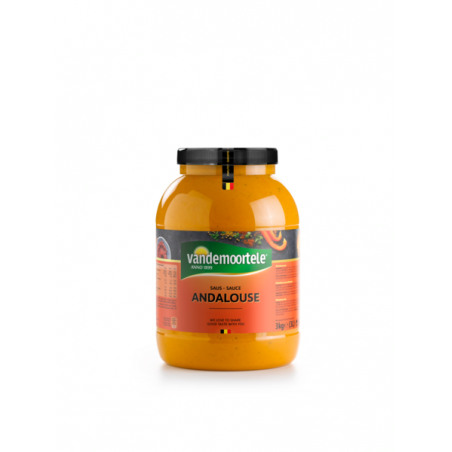 La sauce Vandemoortele Andalouse est une sauce bien épicée avec un accent d'Espagne. Garnie d'oignons grillés, de poivrons et d'épices pimentées.